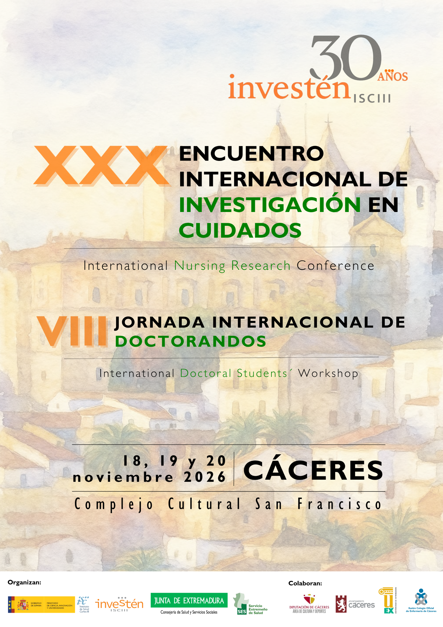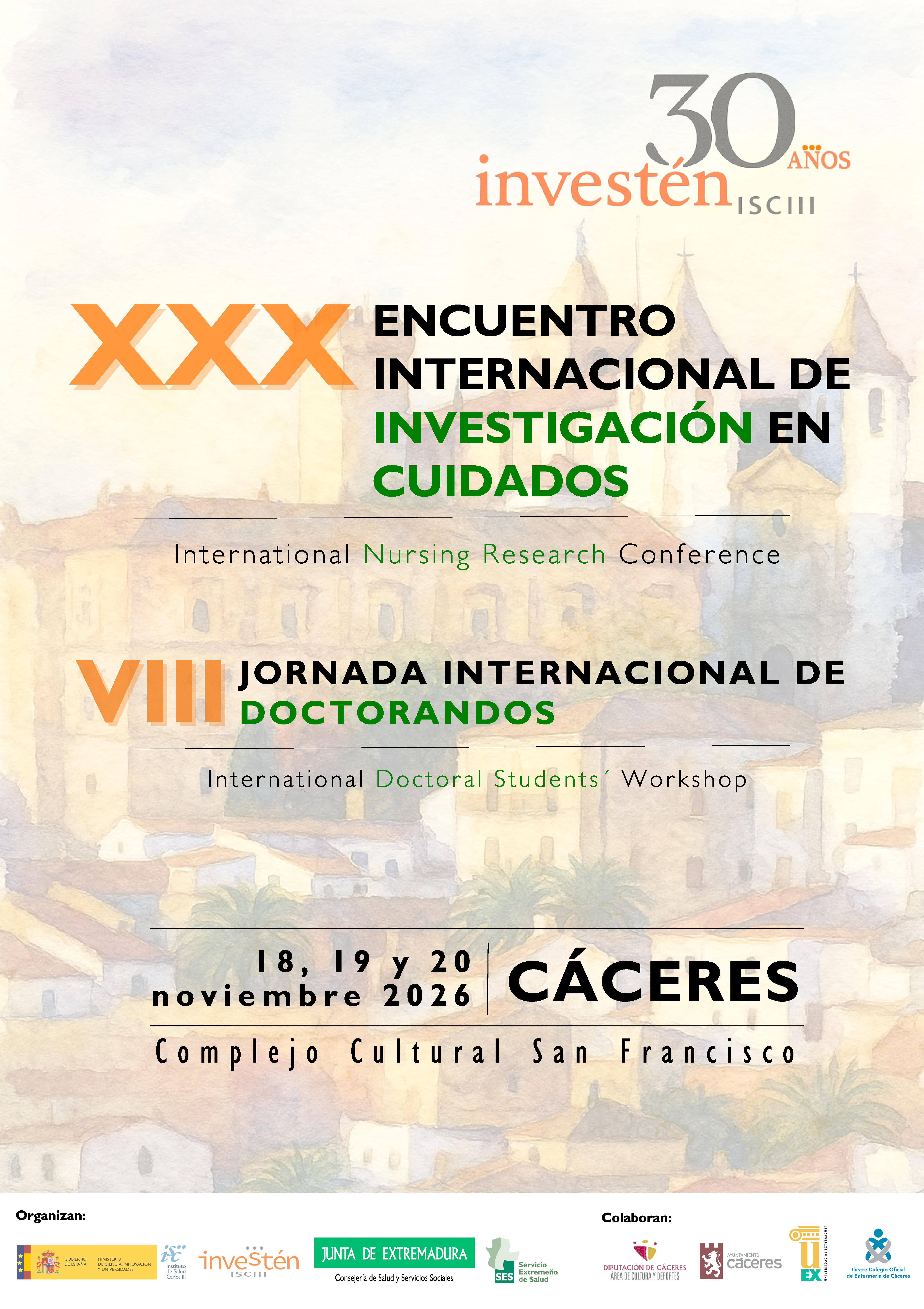 Con motivo de nuestro 30 aniversario, extendemos nuestra invitación a participar en el Encuentro Internacional de Investigación en Cuidados, que se celebrará en la ciudad de Cáceres, del 18 al 20 de noviembre de 2026.
